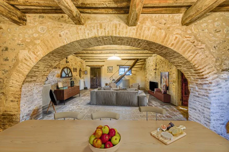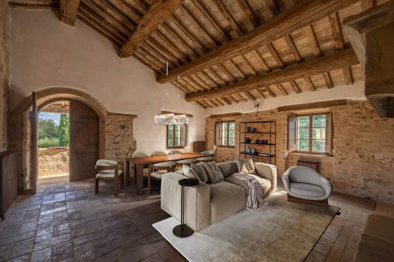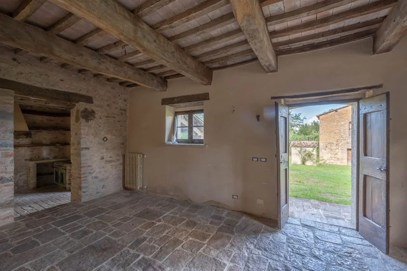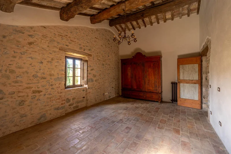 With its 400 square meters of finely restored space, panoramic garden, and private pool, this property combines the authenticity of rural tradition with the discreet luxury of a premier residence. Every detail tells a story of a charm-filled past: original oak beams, antique terracotta tiles, and retro-style fireplaces. At the same time, the division into two independent units makes the farmhouse versatile, perfect for those dreaming of a family home or anyone wishing to start an exclusive tourism business.