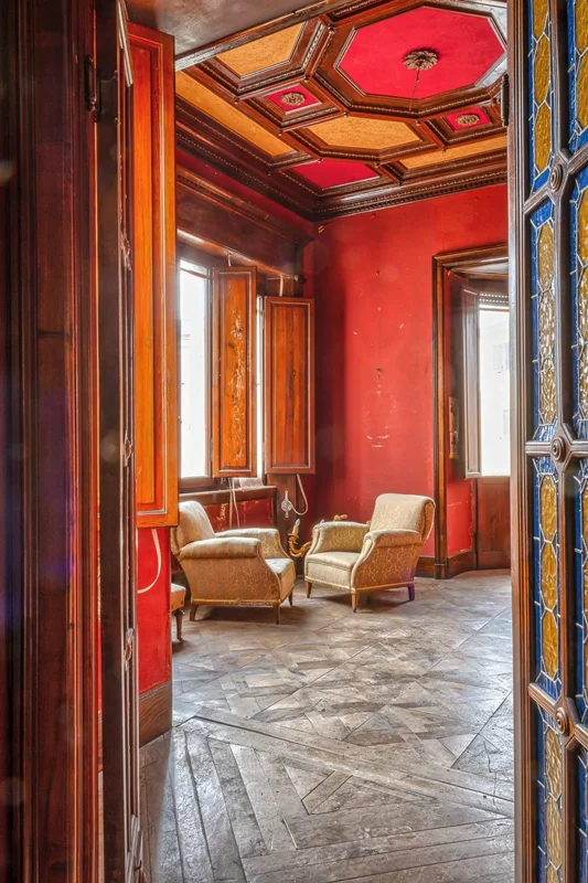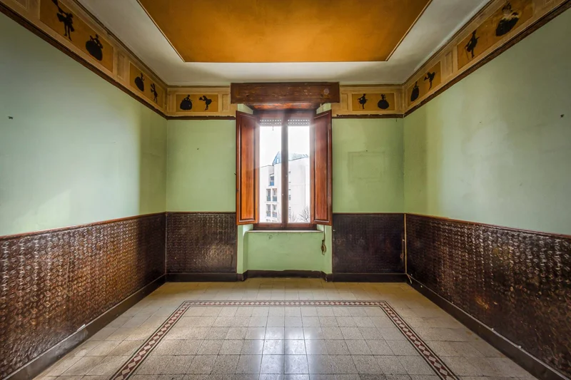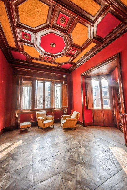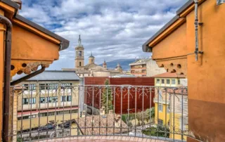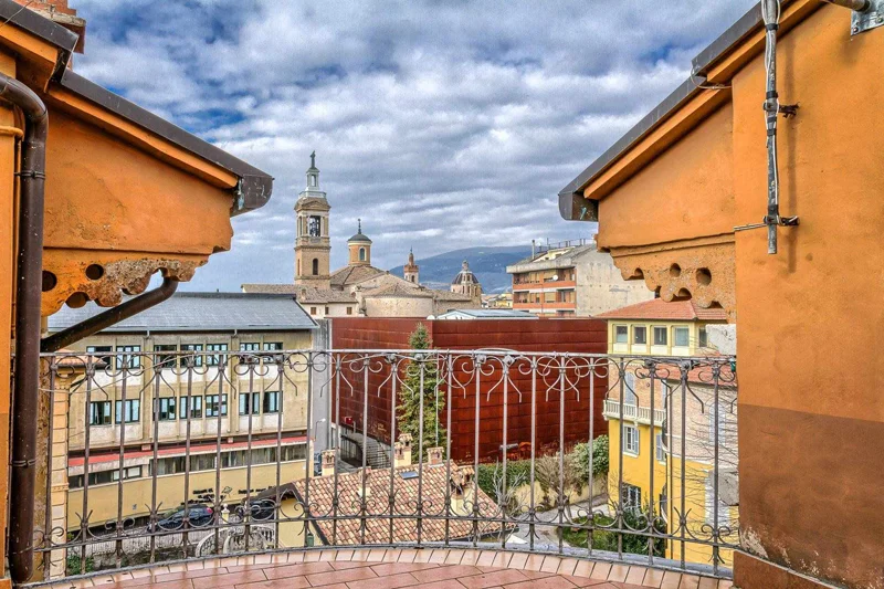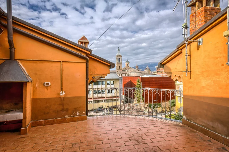 Al piano superiore, raggiungibile tramite lo scalone monumentale al centro del piano primo, si trova il secondo appartamento composto da sei camere, una grande cucina, un bagno ed un bellissimo terrazzo con camino che affaccia sulla splendida vista della città di Foligno.